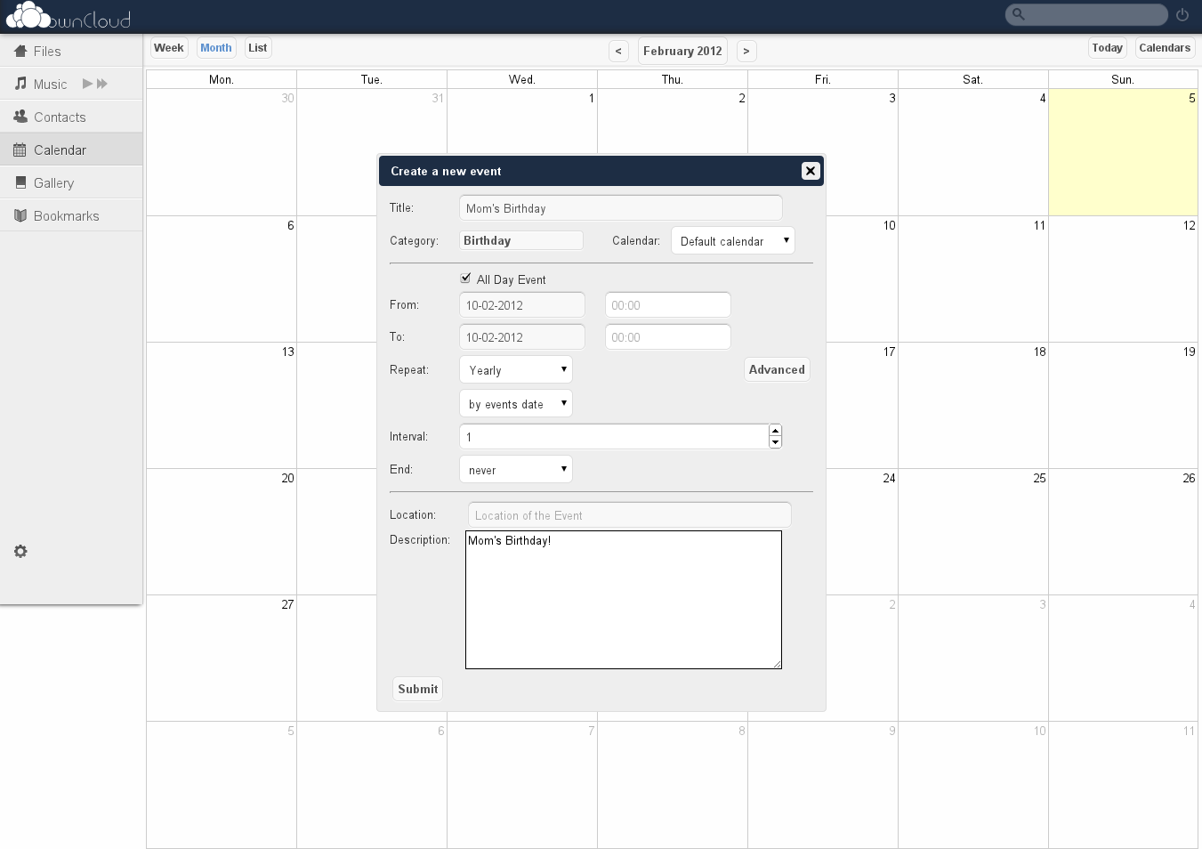 I want to share the calendar, without the tasks inside this calendar. You now have an calendar which you can share publicly with owncloud, lets say for your soccer club to manage your game days, your.